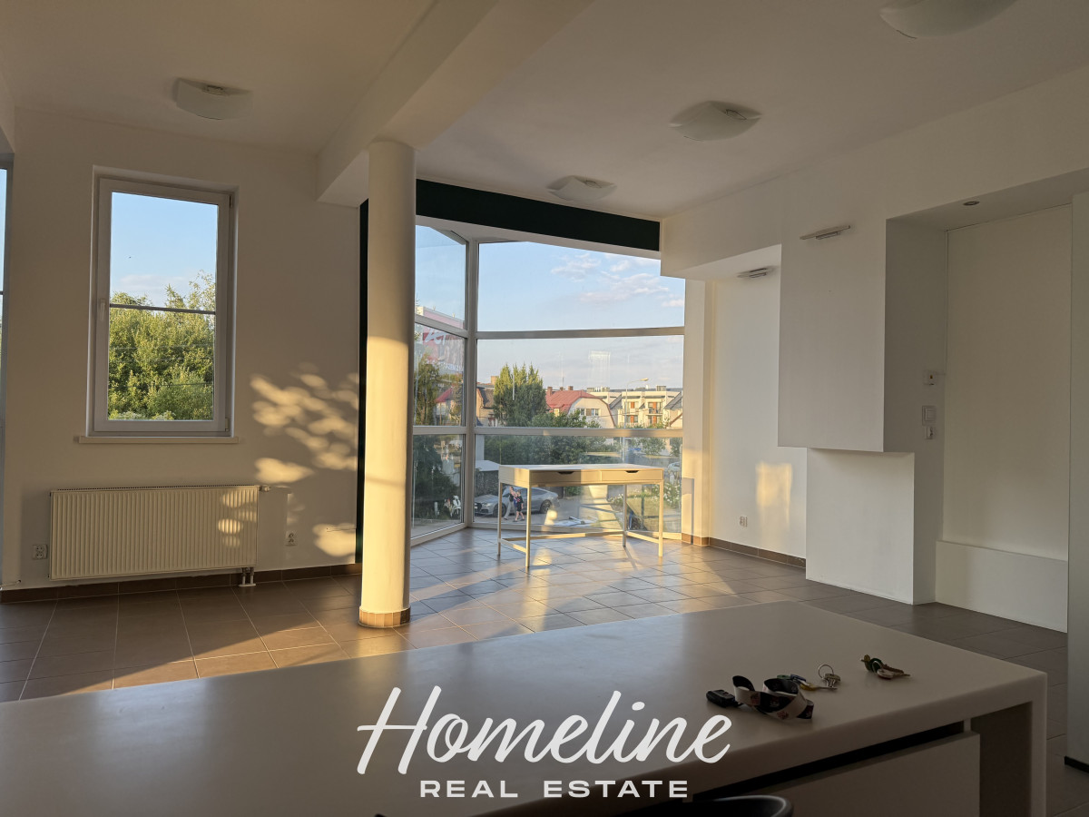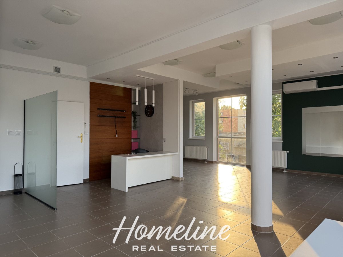 Na wynajem reprezentatywny i przestronny lokal handlowo-usługowy z dobrze widoczną witryną. Lokal położony jest w świetnie skomunikowanej części miasta. Przestrzeń jest otwarta i dobrze doświetlona, duże okna wychodzące na zieleń.