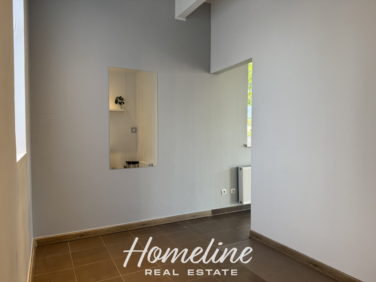W tym momencie jest wynajęty pod studio tatuażu, na podłogach są kafelki.
